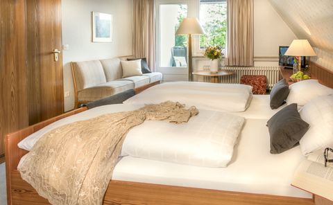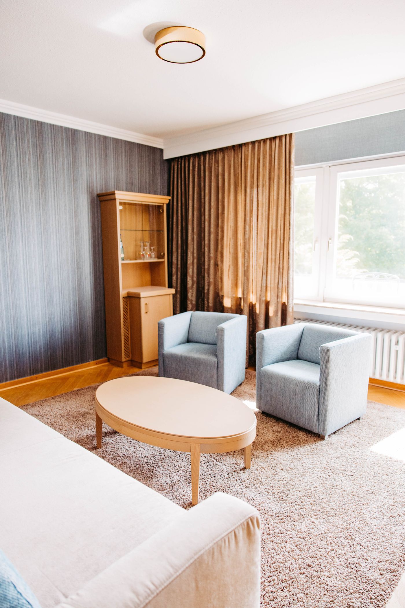 Unsere exklusiven und großzügigen Panoramasuiten bieten Ihnen eine unvergleichliche Panoramaaussicht über das Land der 1000 Berge in bester Lage. Sie wohnen hoch oben über den immergrünen Tälern des Sauerlandes und genießen in einmaliger Süd – Westlage den Sonnenuntergang auf Ihrem Balkon oder Terrasse. Die geräumigen Wohn – und Schlafzimmer verfügen über eine großzügige Sitz – und Leseecke, sowie einem Schreibtisch. Die Doppelbetten in hochwertigem Kirschholz laden zum Träumen ein und die erholsame Ruhe tut Ihr Übriges. Die geräumigen Badezimmer sind mit Badewanne und Dusche ausgestattet. Separates WC.Das zweite Zimmer verfügt über ein Einzelbett und einen separaten TV.Auf Wunsch mit Zustellbett.Als Familiensuite für 4 Personen bewohnbar.Inklusive unserem reichhaltigen Frühstück und der Halbpension.