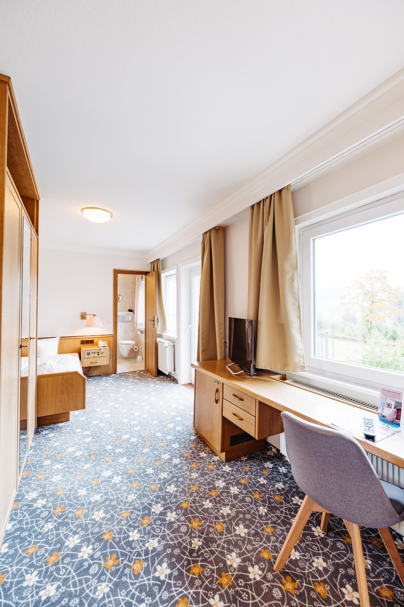 Unsere gemütlichen und komfortablen Einzelzimmer mit Balkon, im Stammhaus gelegen sind alle mit einem kleinen Badezimmer ausgestattet und verfügen über einen Schreibtisch sowie eine geräumige Sitzecke.